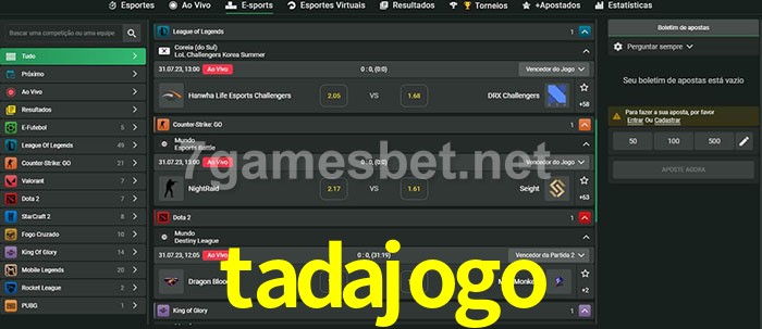 O tadajogo oferece uma grande seleção de opções de apostas em e-sports com probabilidades competitivas